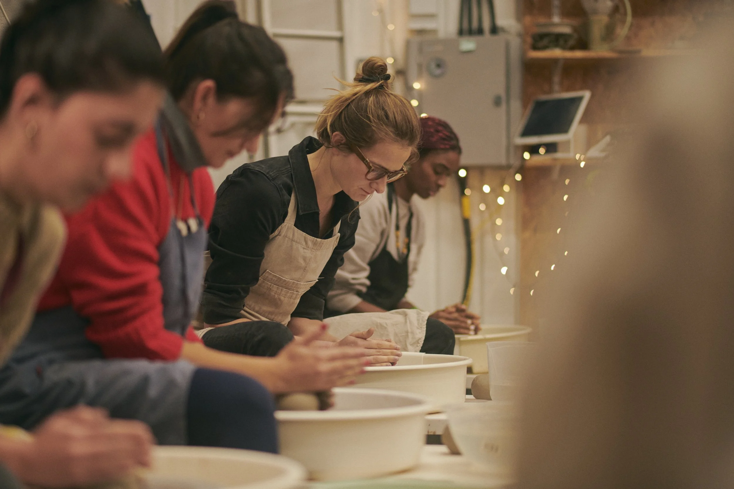 Comfortable clothing for yoga. We do not move much for yin yoga, so no need to wear sports clothing! We provide clay aprons and yoga mats. If you have a favourite apron or yoga mat, you are welcome to bring it!
